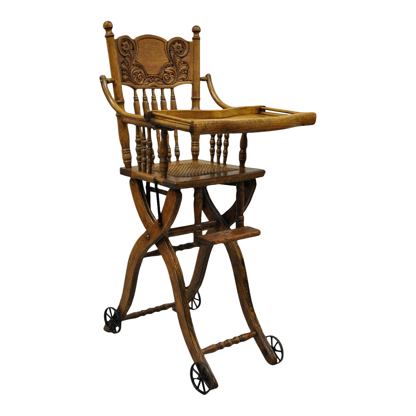 1890 s Child s Oak Pressed Back High Chair Stroller Southwest