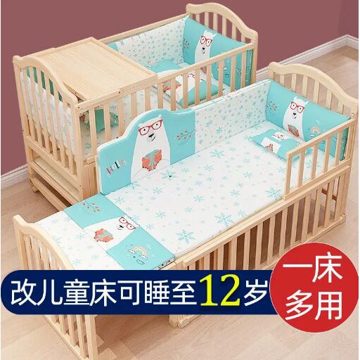 Baby crib splicing big bed solid wood unpainted multifunctional bb