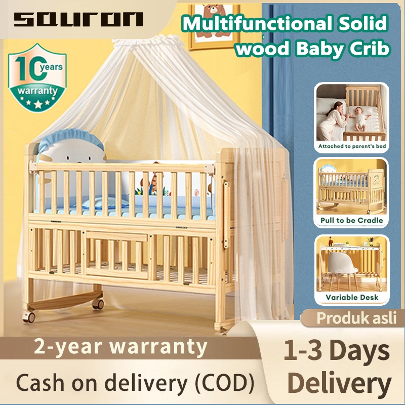 Baby crib Solid Wood 2 Level Crib Multifunctional Baby bed Up to 6