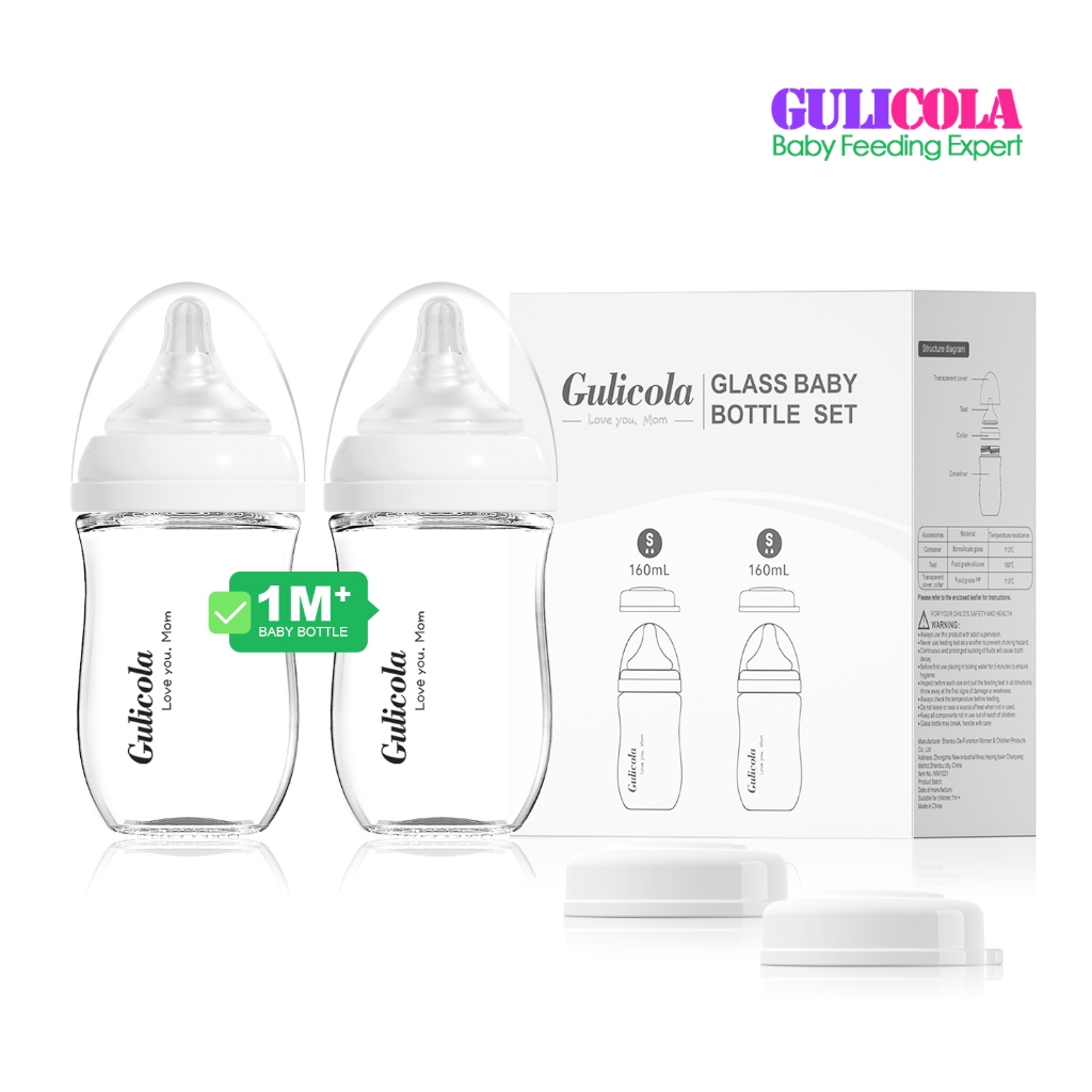 Gulicola Natural Glass Baby Bottle for Breastfeeding Babies Wide