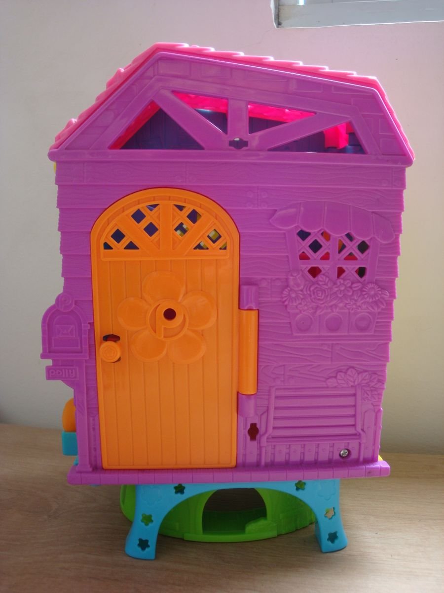 Polly Pocket 2 level Super Secret Clubhouse with Bedroom. Kitchen Slide 3 inch Polly doll Peaches Dog Figure Couch Chair Pie Accessories For