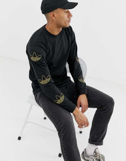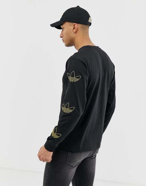 adidas Originals Long Sleeve T Shirt With Trefoil Arm Print Black DV3152