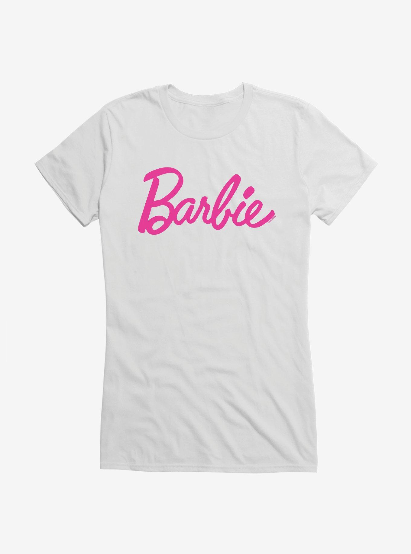 Barbie t shirt clearance pink, Barbie Classic Pink Script Girls T Shirt Hot Topic clearance