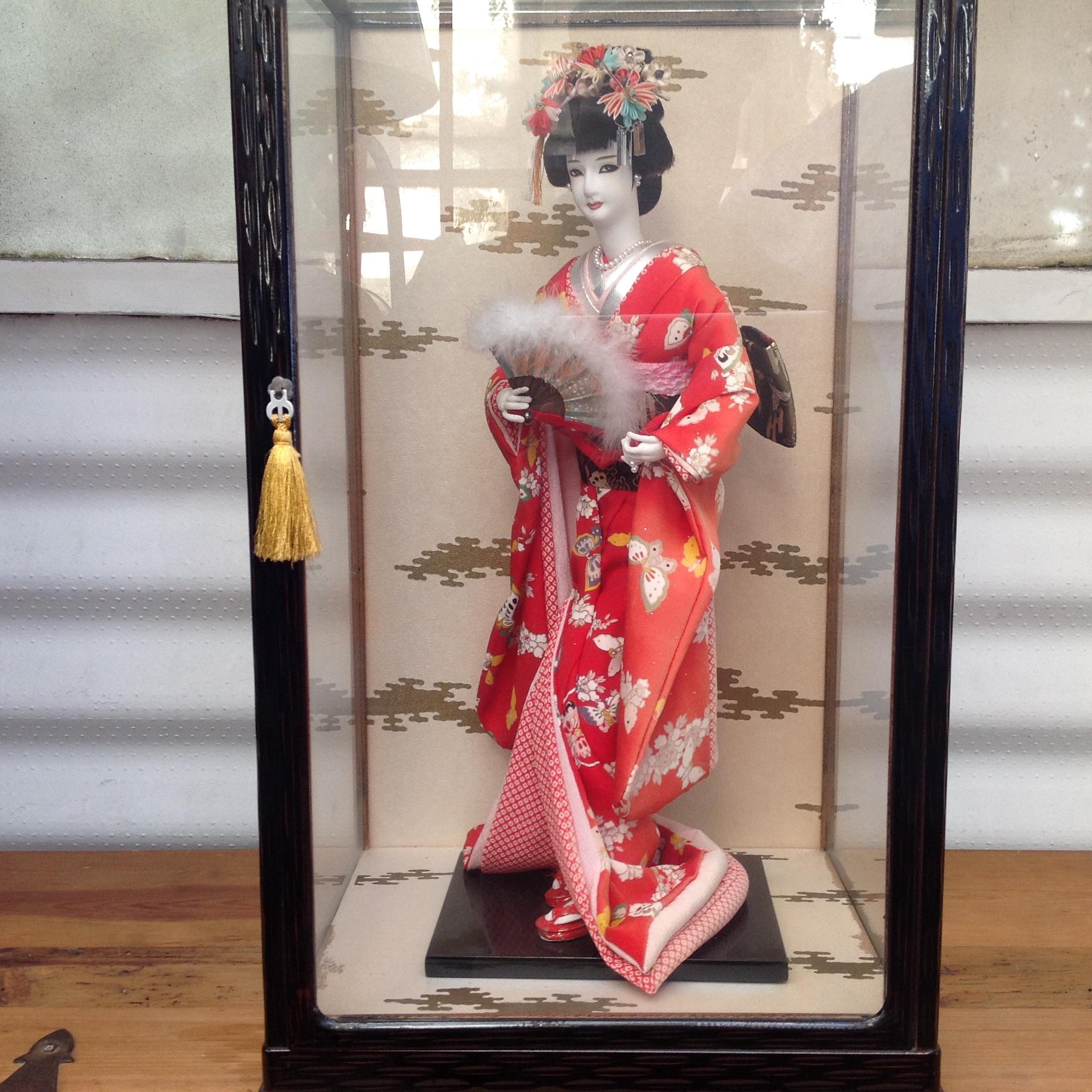 China doll in clearance glass case, Lot JAPANESE GEISHA DOLL IN DISPLAY CASE clearance