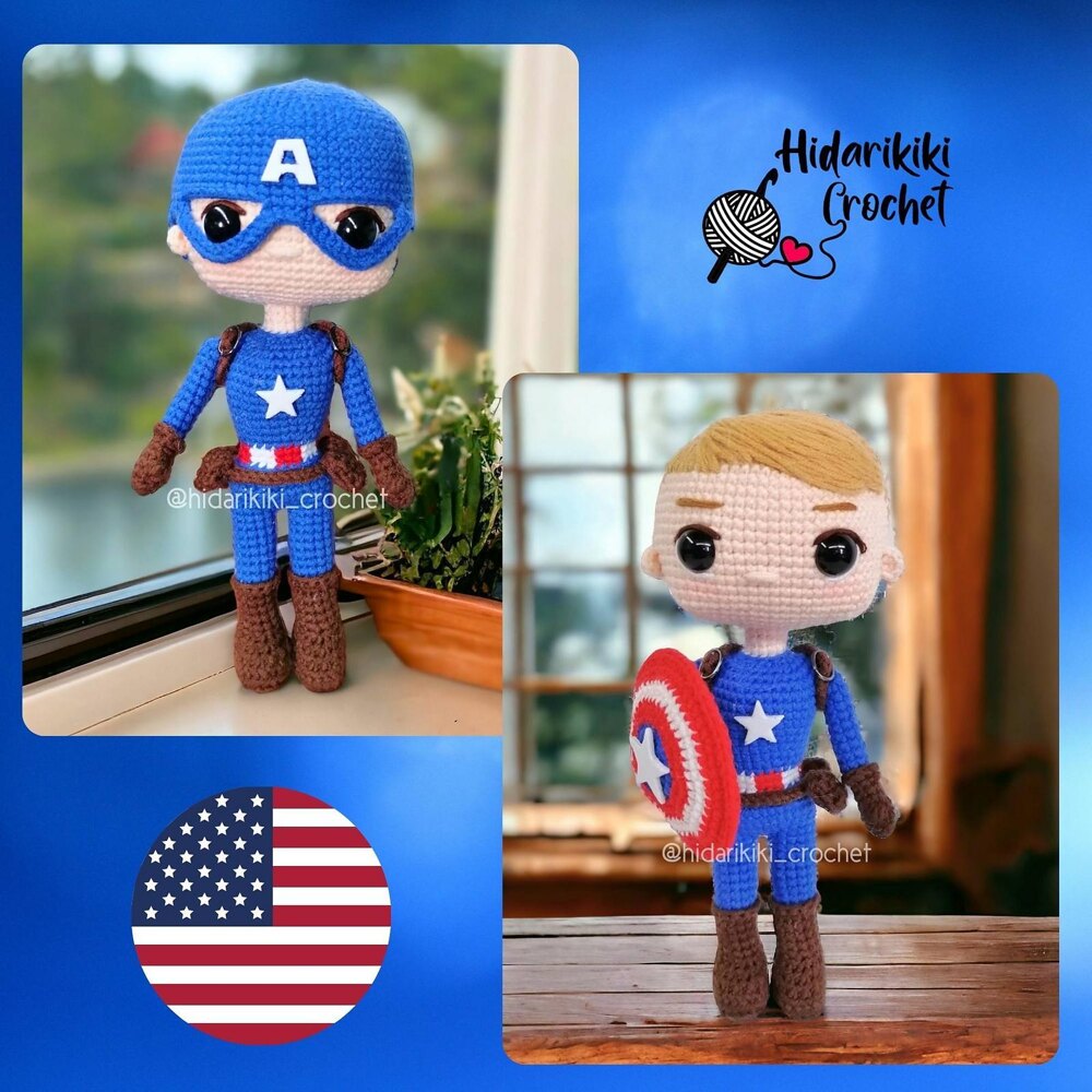 Captain america crochet clearance doll pattern, Captain america amigurumi doll clearance