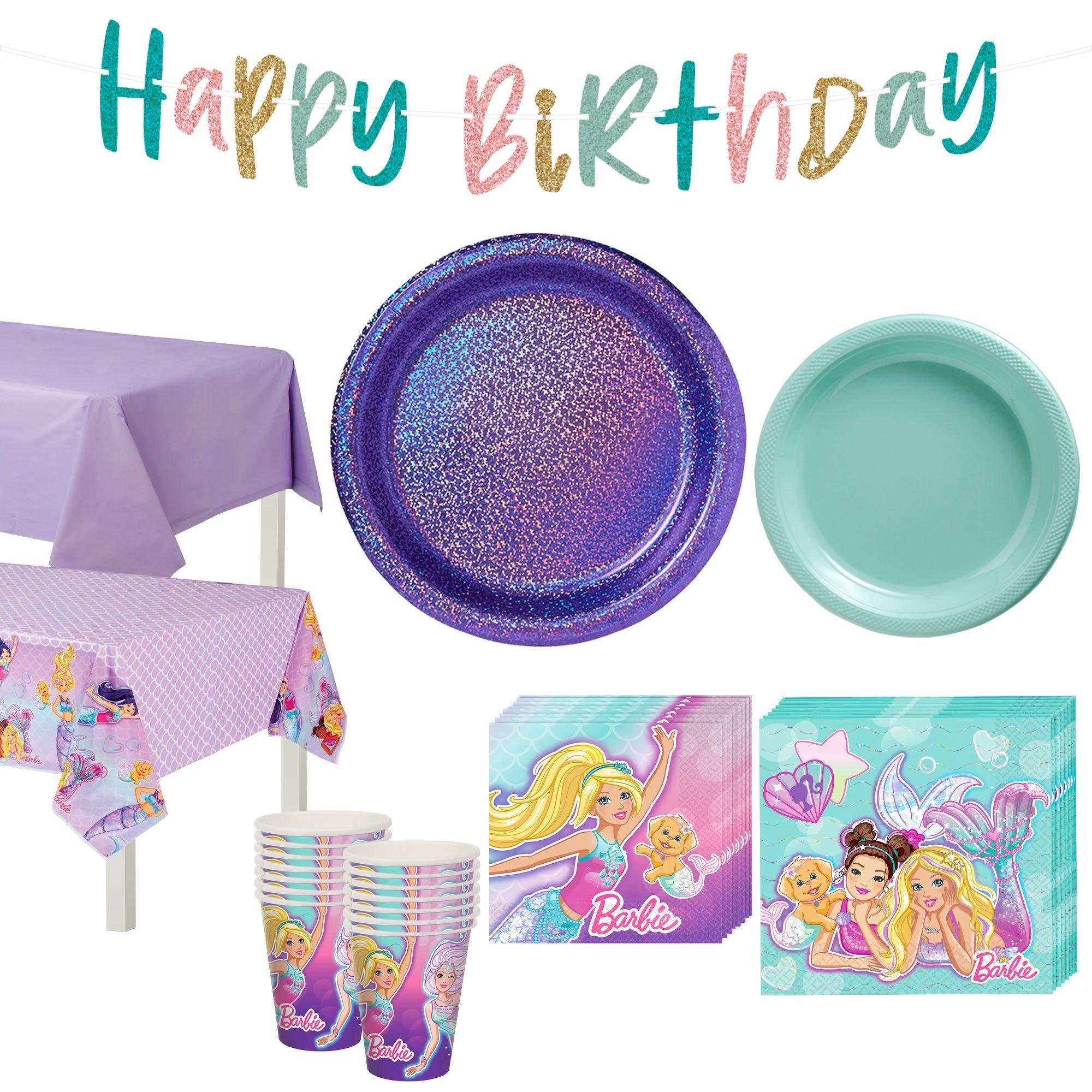 Iridescent Barbie Mermaid Birthday Party Tableware Kit