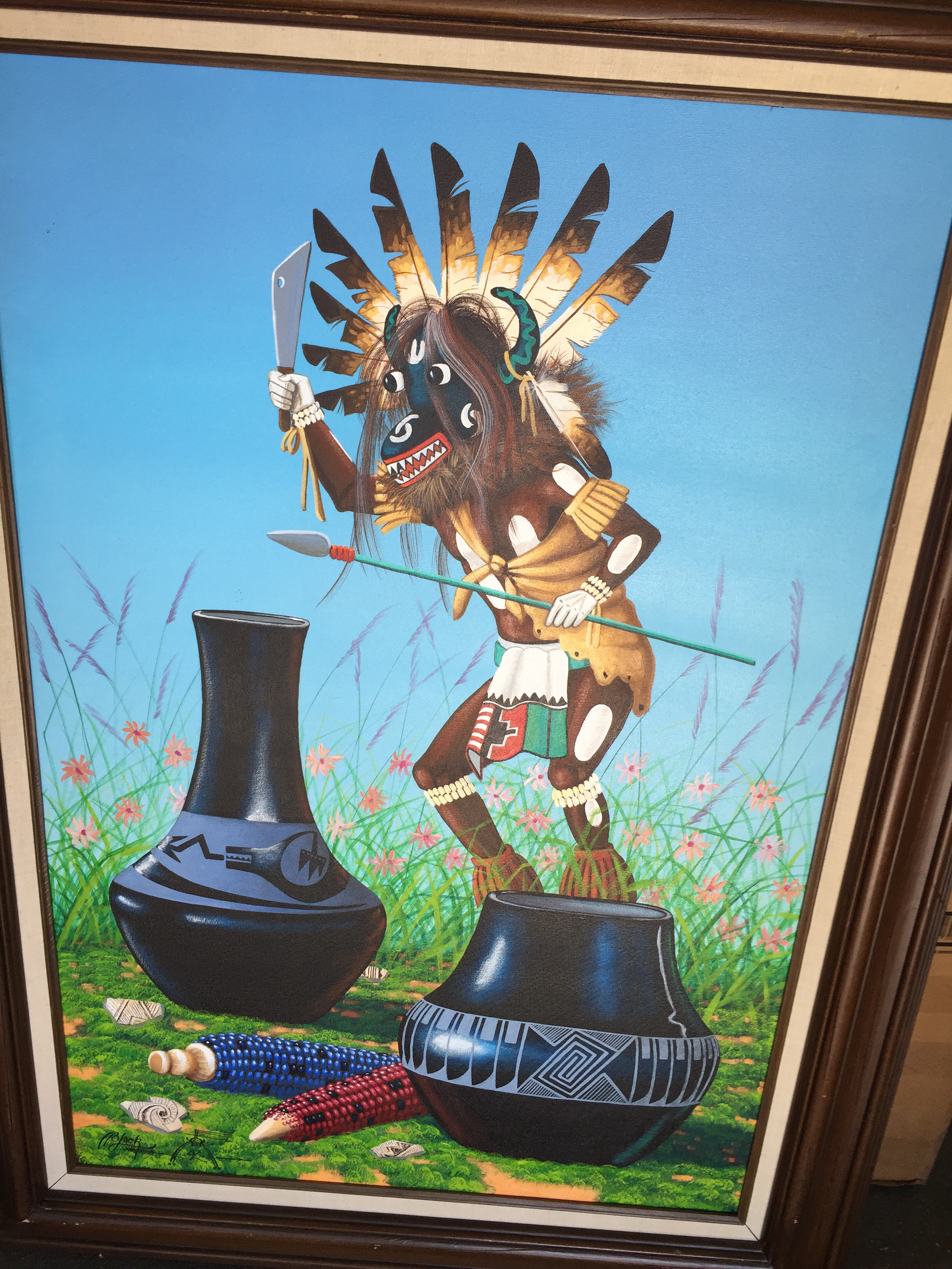 Jackie Black Oil Painting Hopi Ogre Kachina Chairish