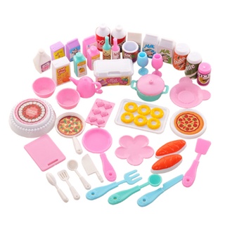 Dollhouse Miniature Kitchen Food for Barbie 43 pcs Dinner Set Fork Knif Plate Pizza Soup Tableware Kids Toys Doll Accessories