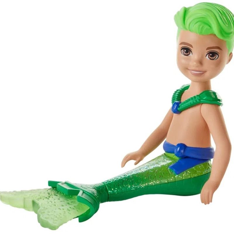 Barbie clearance boy mermaid, Barbie Dreamtopia Chelsea Merboy Green Hair Boy Green Mermaid Tail Doll NEW clearance