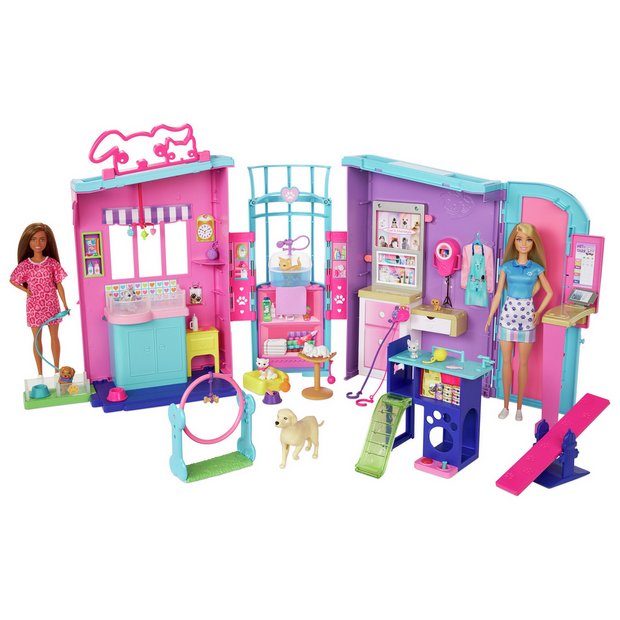 Barbie pet care clearance center argos, DELUXE Barbie Pet Daycare 2 BARBIES 1 Playset 4 Dogs 3 Cats 21 accessories clearance