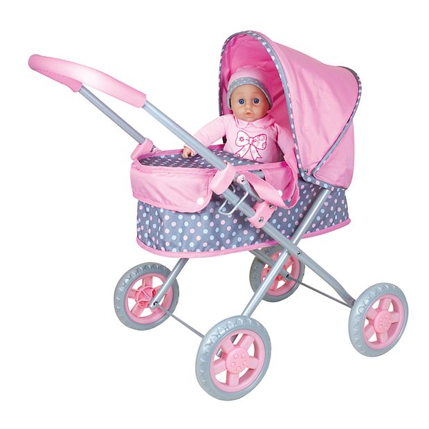 Lissi Dolls Baby Pram 14 in. Soft Baby Doll Set