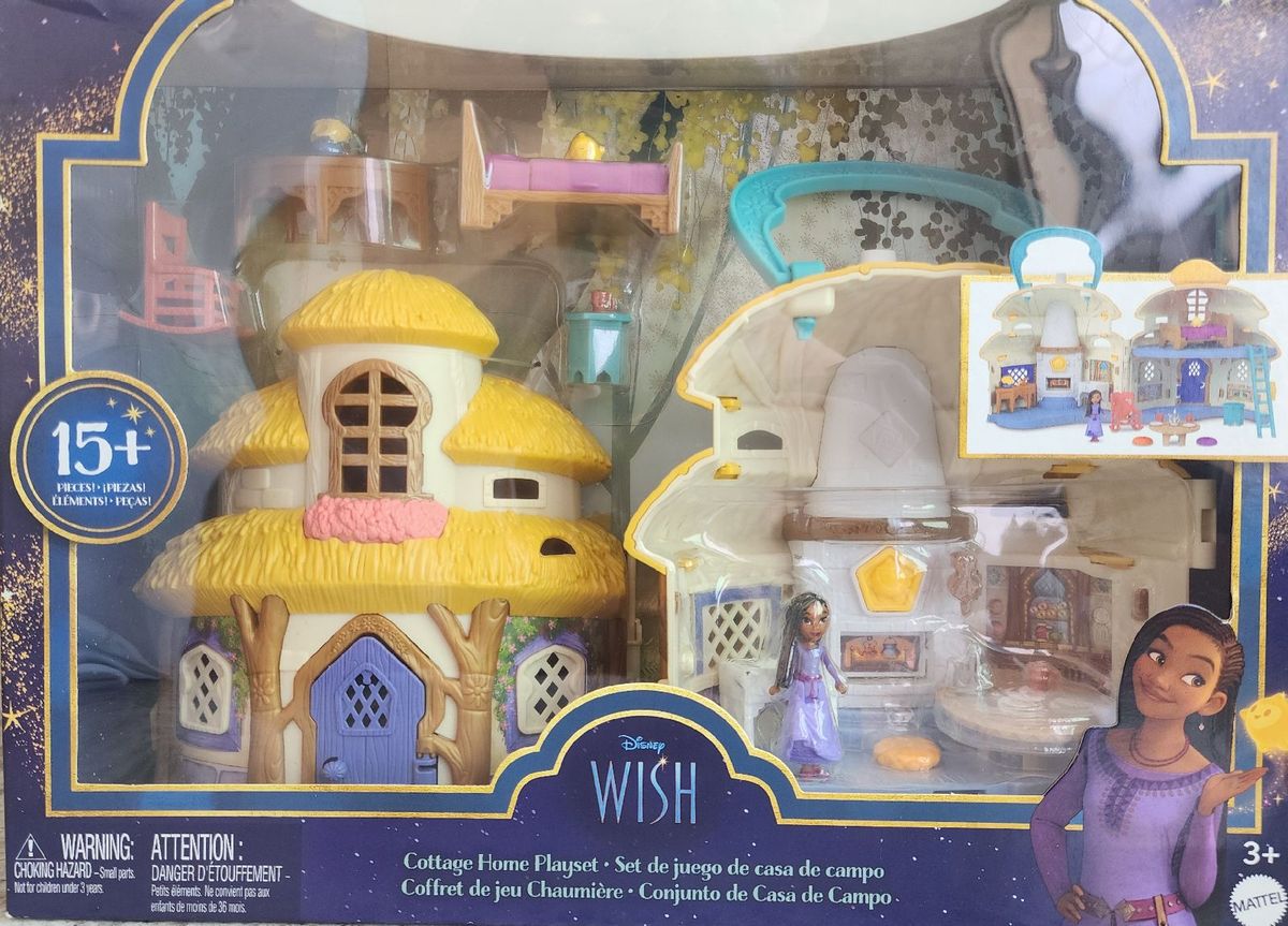 Mattel Disney Wish Mini Doll Dollhouse Playset Asha of Rosas Cottage with Micro Doll Star Figure 15 Furniture Accessories Travel Toys