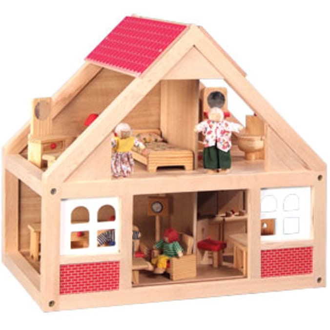 Wooden Classics Dolls House with 4 Figures Home Bargains
