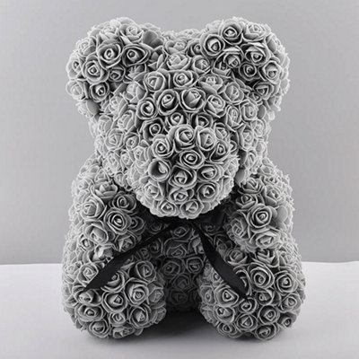 Gray rose teddy clearance bear, Grey 25CM Artificial Rose Teddy Bear Festivals Gift with Box and clearance