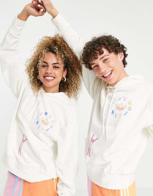 adidas Originals Pride Love Unites hoodie in off white with print design