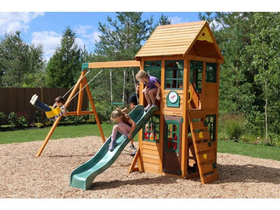 B and q clearance climbing frames, Rebo Wooden Climbing Frame with Swings 2 Slides Up over clearance