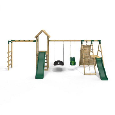 Rebo Wooden Climbing Frame with Swings 2 Slides Up over