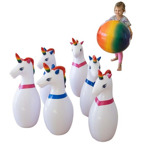 Hearthsong Giant Inflatable Unicorn Bowling Set For Kids With 6