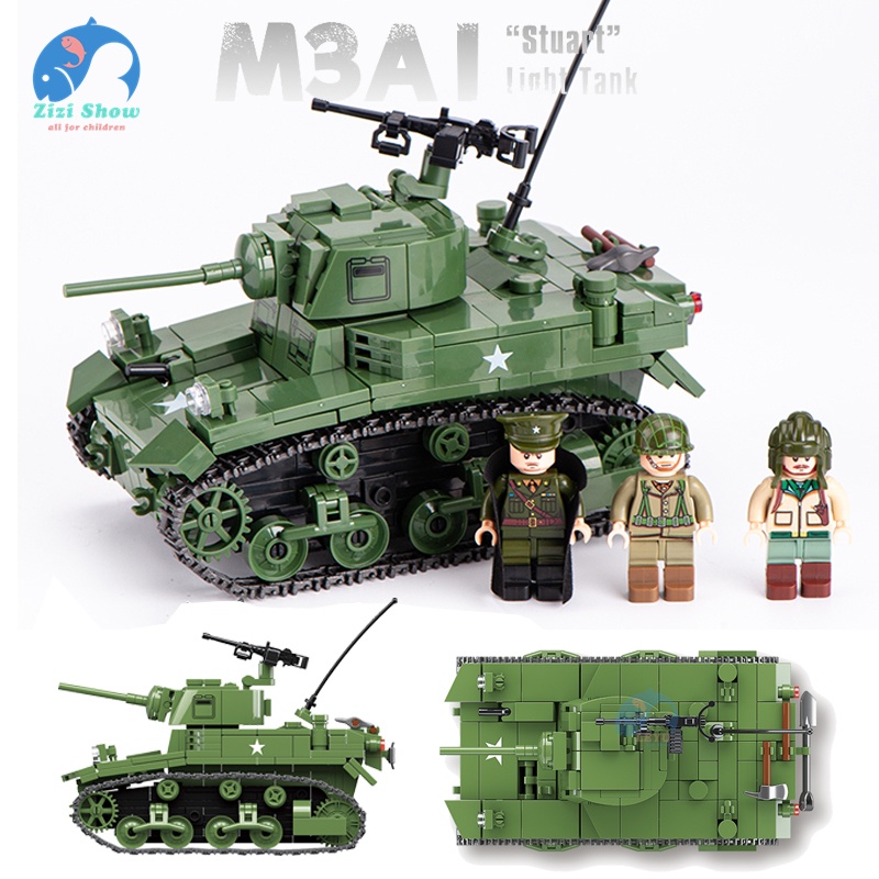 LEYU Military Tank Blocks Bricks US M3A1 Stuart Model Kit Building