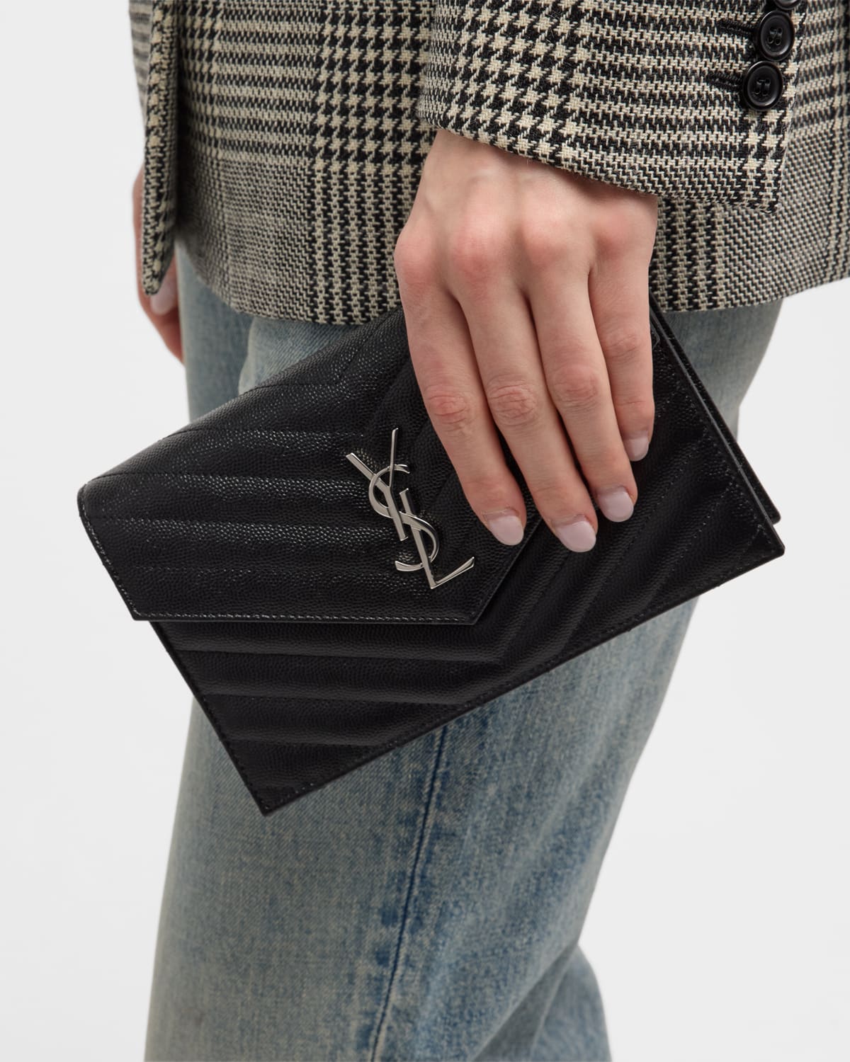 YSL Monogram Small Wallet on Chain in Grained Leather