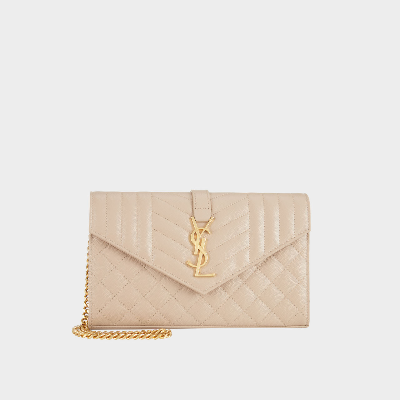 Monogram matelasse leather clearance chain wallet, Saint Laurent Beige Matelasse Leather Monogram Envelope Wallet on clearance
