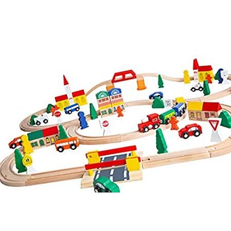 Orbrium toys 52 pcs clearance deluxe wooden train set