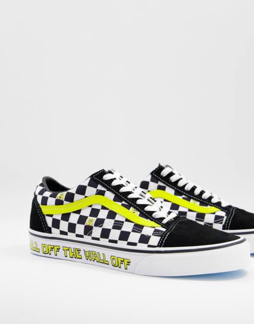 Black and white vans with clearance yellow stripe, Vans x Spongebob Old Skool Off The Wall sneakers in black white clearance