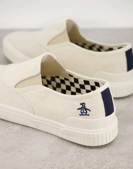 Buy Original Penguin Mens Sabre Slip On Canvas Pumps Black White Sole