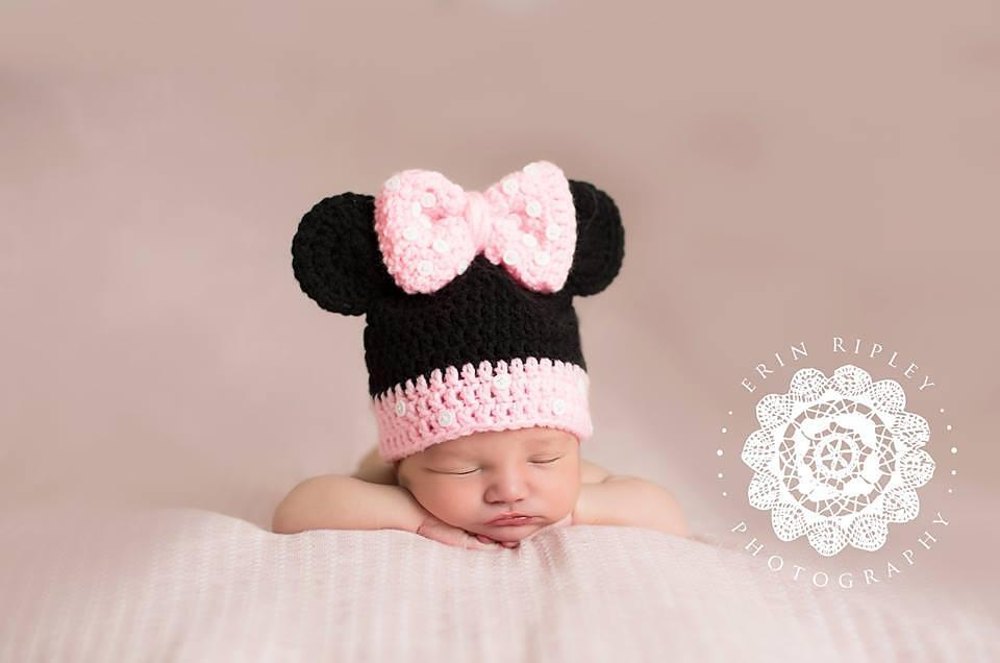 Minnie mouse beanie clearance baby, Black double pom pom hat with bow Minnie Mouse beanie Crochet clearance