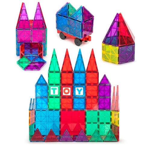 Magnetic building block clearance set, Playmags 56 Piece Set 6 Click ins Magnetic Tiles Building Set 3D Magnet Building Blocks with Car Bed clearance