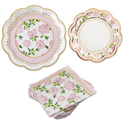 Kate Aspen Pink Floral Tea Party 62 piece Tableware Set 16 guests 00261NA KIT