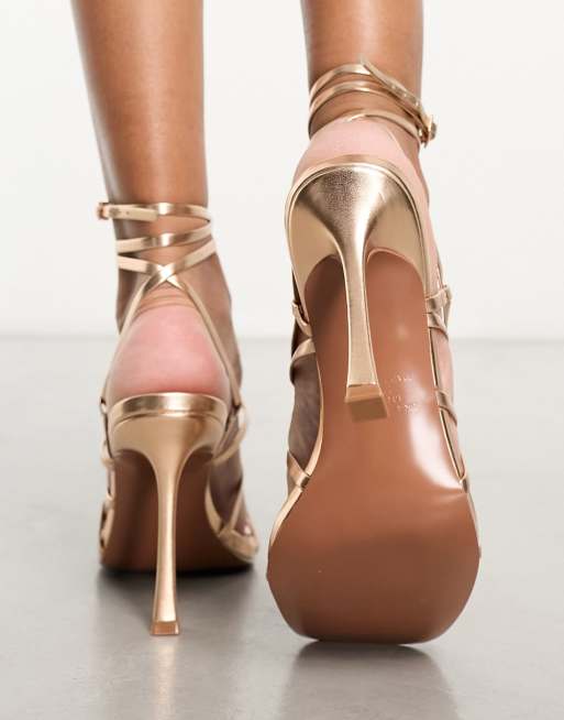 ASOS DESIGN Native strappy heeled sandals in rose gold ASOS