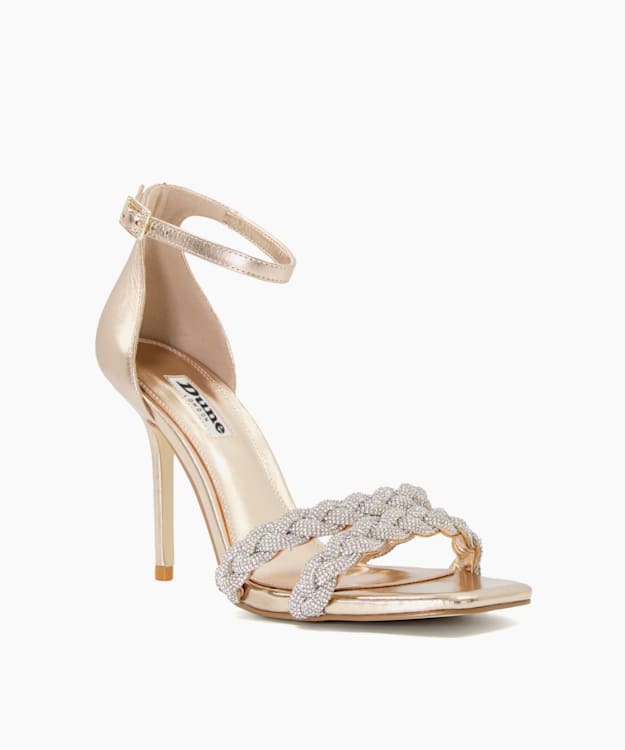Melodic Rose Gold Metallic Diamante Strap Heeled Sandals Dune