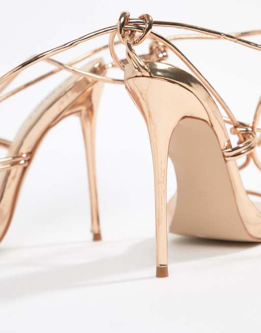 Milli Rose Gold Lace Up Twist Toe Thong Stiletto Heels