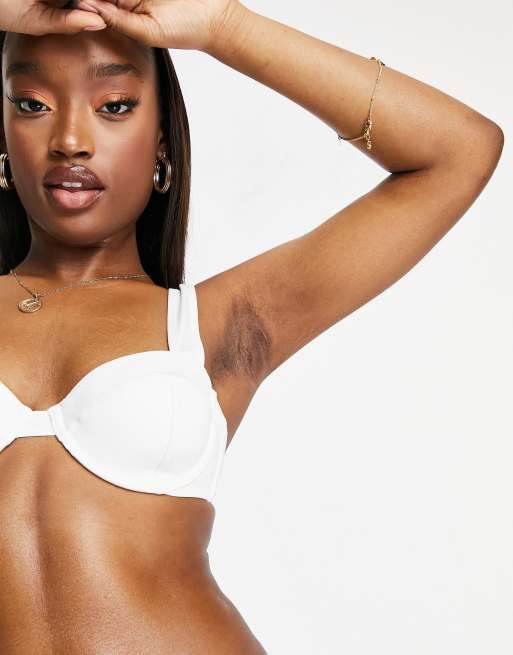 ASOS DESIGN mix and match underwire balconette bikini top in white
