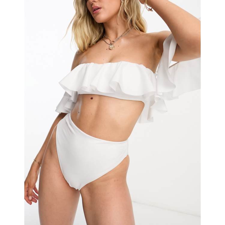 ASOS DESIGN mix and match off shoulder frill bikini top with detachable sleeves in white