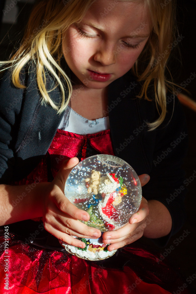 A little girl with a Christmas snow globe Stock Photo Adobe Stock