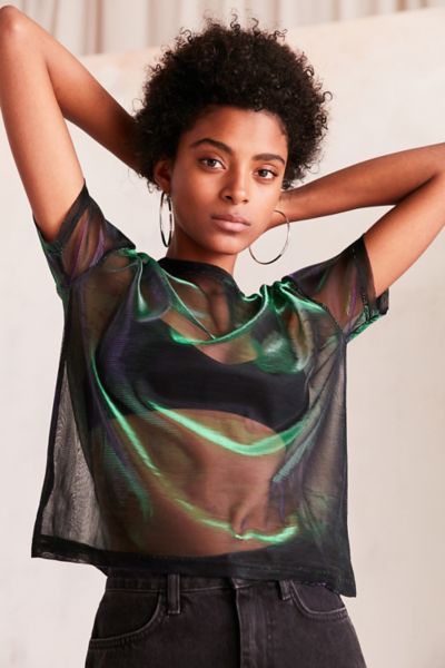 Silence Noise Iridescent Shimmer Mesh Tee Urban Outfitters