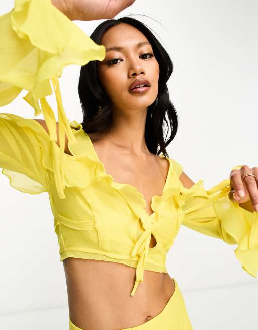 ASOS DESIGN soft ruffle top with tie front co ord in yellow ASOS