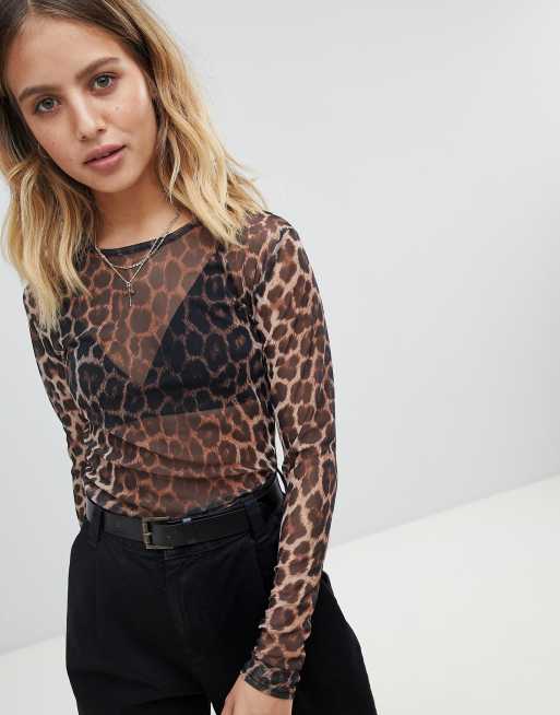 Mesh clearance top leopard, Buy Boohoo Leopard Cut Out V Hem Mesh Top In Brown 6thStreet Kuwait clearance