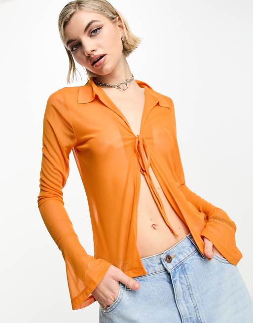 COLLUSION sheer tie detail shirt in bright orange ASOS