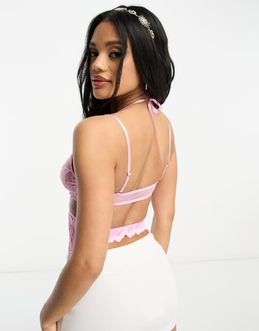 ASOS DESIGN Festival butterfly lace bralette in pink ASOS