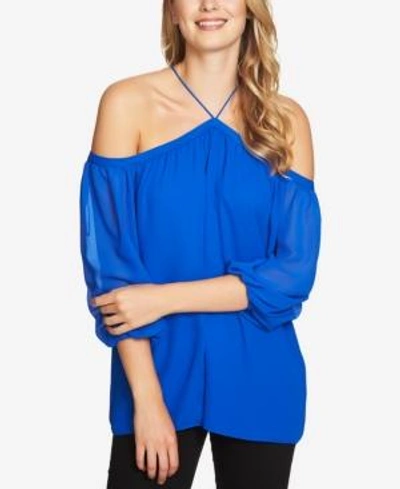 1.state Off The Shoulder Sheer Chiffon Blouse In Cobalt Blue