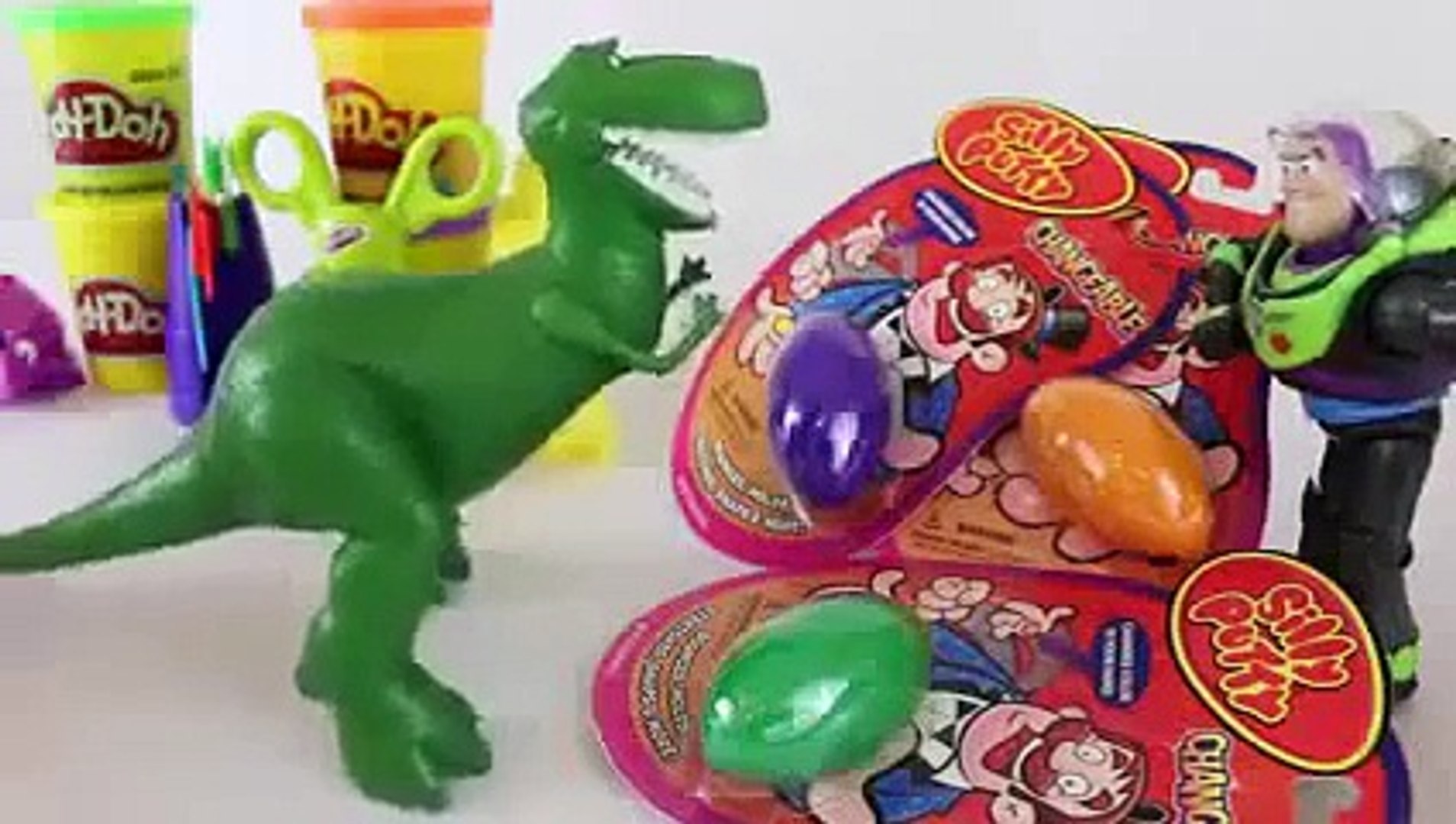 Play doh vs Silly Putty with Disney Pixar Toy Story 3 Buzz Lightyear and Rex Custom DIY Pl
