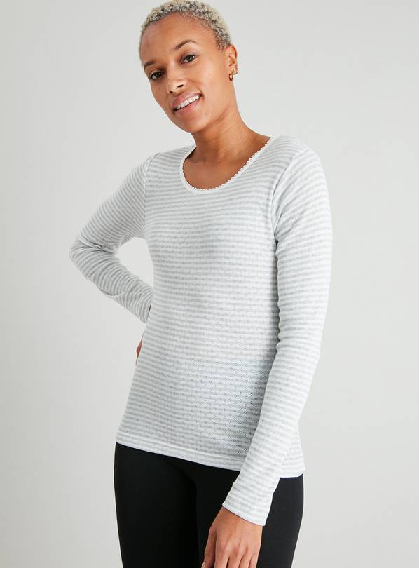 Buy Grey Cream Pointelle Long Sleeve Thermal Top 2 Pack 16 Thermals Tu