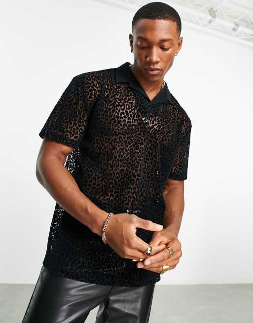 ASOS DESIGN polo shirt in sheer fabric with leopard flock print ASOS