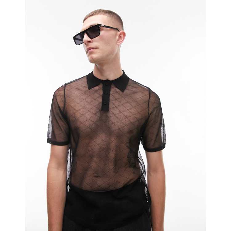 Topman knitted sheer polo with diamond in black ASOS