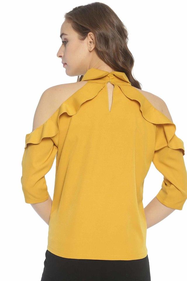 Buy IS.U Mustard Women s Mustard Cold Shoulder Top Shoppers Stop