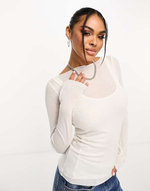 Abercrombie Fitch long sleeve semi sheer top in cream ASOS