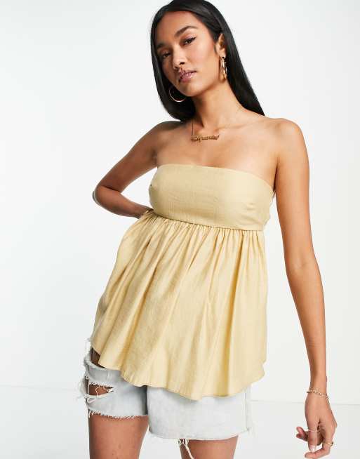 Topshop clearance yellow bandeau, Topshop linen bandeau top in sand clearance